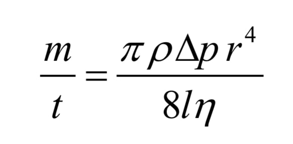 Przepływ cieczy przez cienkie rurki zależy między innymi od współczynnika lepkości, oznaczanego symbolem η. Wzór wyrażający masę cieczy m przepływającej w czasie t przez rurkę o długości l i promieniu r ma postać: