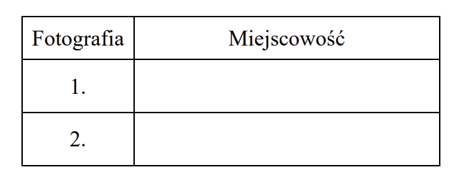 Uzupełnij tabelę. Podaj nazwy miejscowości, w których znajdują się obiekty przedstawione na fotografiach.